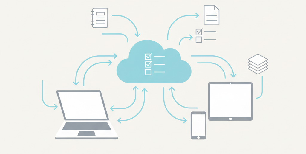 Productivity apps sync data across devices by storing your changes in a central system and…